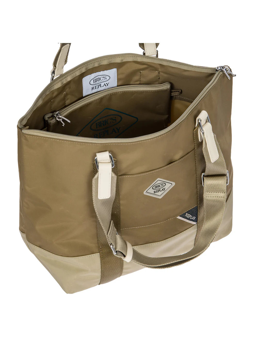 Bric’s Replay Collection large 3in1 Sportina bag is made of an exceptionally sturdy and water-resistant recycled fabric. This shoulder bag has soft nylon straps with a special function: with their adjustable length, the bag can be worn on the arm or on the shoulder, and since they can also be detached, it can be worn as a shoulder bag by clipping the straps together. The inner zipped pocket is detachable and, thanks to the shoulder strap, can be transformed into an additional flat bag.