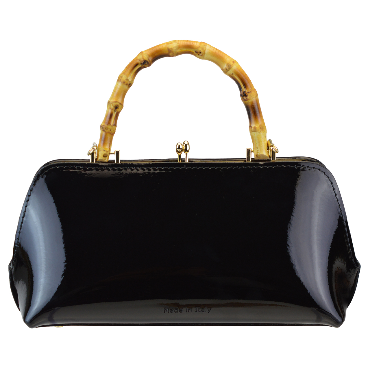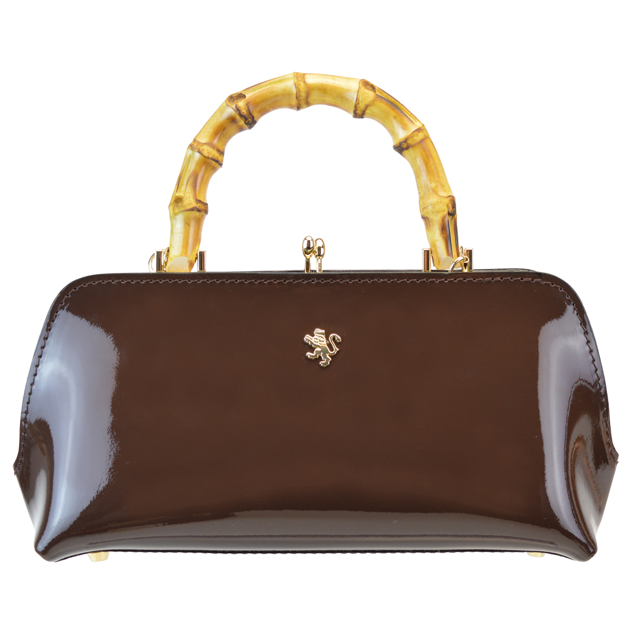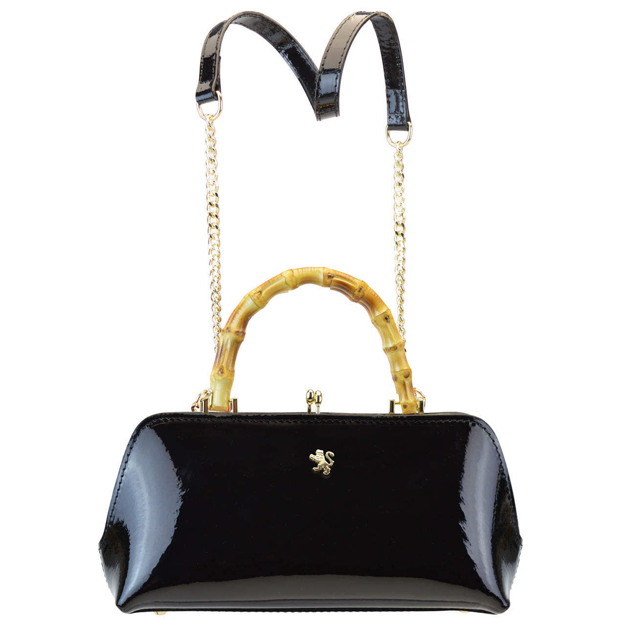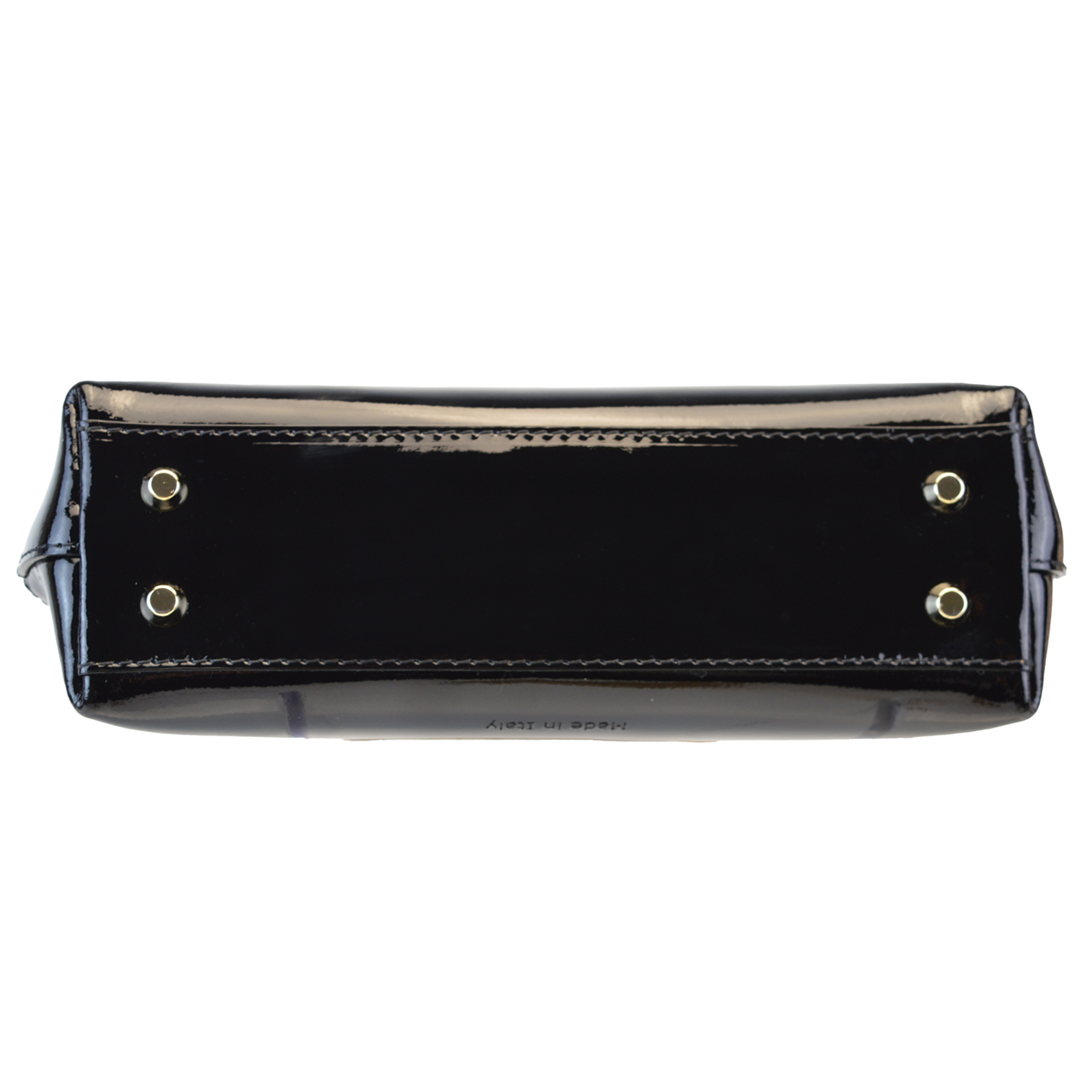 The Candeli handbag is crafted from genuine Italian patent leather with a semi-rigid structure. It features a large compartment with a metal zipper closure and an LED light that makes it easy to find your favorite accessories. The hardware is gold-tone. It comes with a detachable shoulder strap and a cotton pouch. With refined craftsmanship and meticulous workmanship, the Candeli handbag combines luxury and versatility, elegantly completing any outfit. Made in Italy by the historic Florentine brand Pratesi.