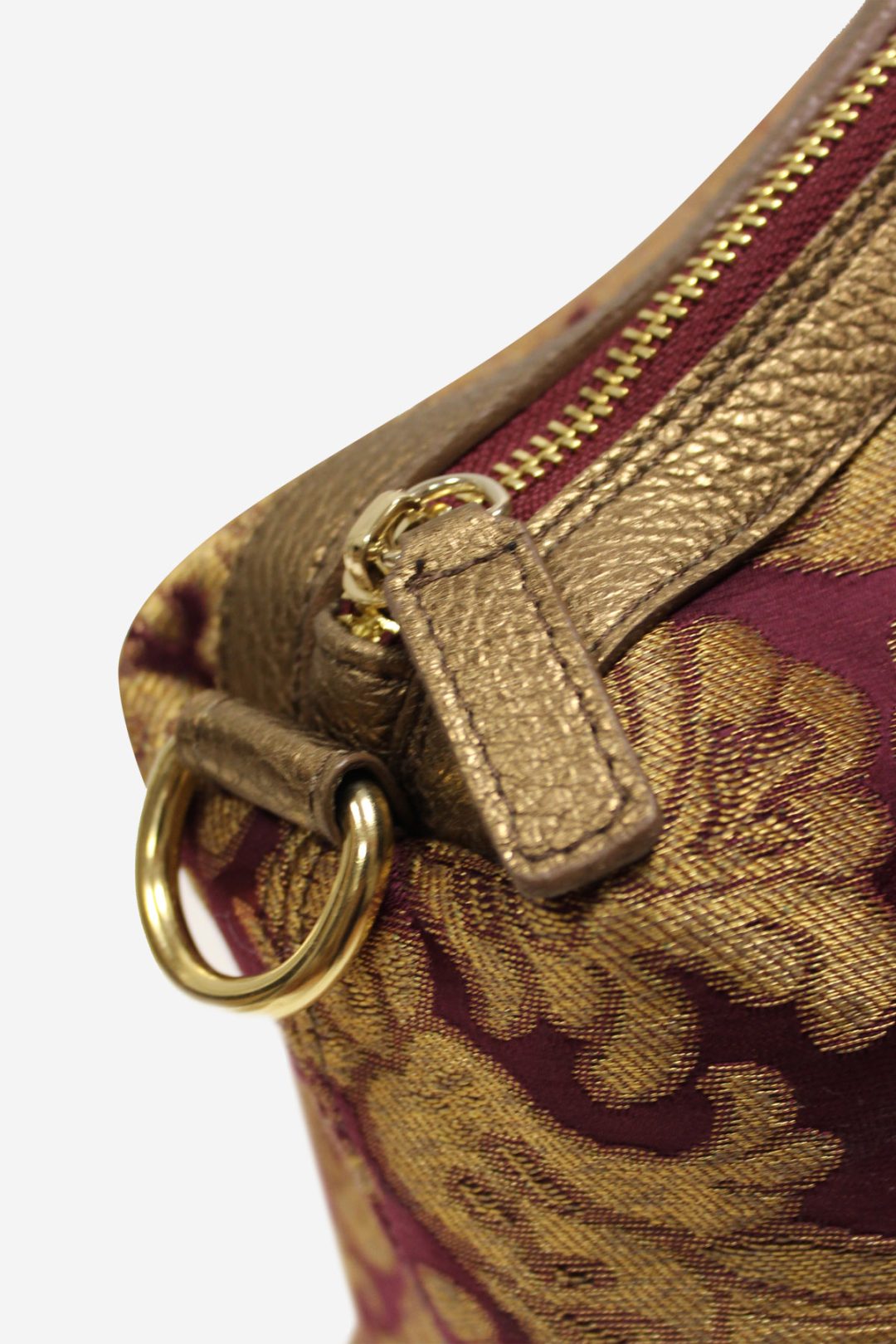 Airy, wide and roomy with a large inside pocket. This perfection is comparable to Brunelleschi’s architectural mastery. Inspired by the ancient for shapes and sinuosity, but incredibly avant-garde and still bewitching today. Designed to contain numerous items, accessories and anything you need to carry with the care, style and harmony that this bag emanates. This version is characterized by the precious damask silk.